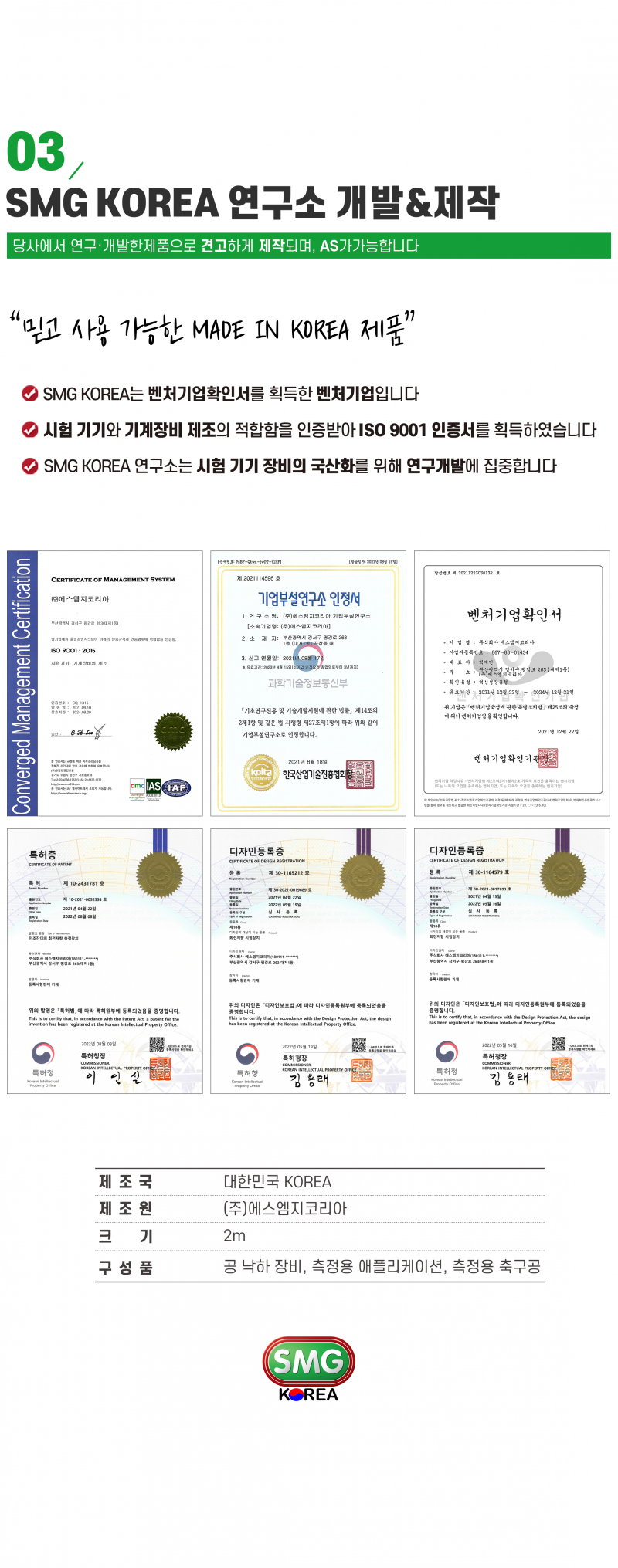 This is a combined equipment that allows testing of vertical ball rebound and ball roll on synthetic turf systems. The equipment allows for conducting distance measurement tests of the ball's flight on a 1-meter high, 45-degree inclined slide. This equipment is similar to the 'Combined Ball Rebound and Ball Roll Tester' but instead of a microphone, it consists of a measurement application installed on a smart device and a ball drop apparatus. It allows for convenient measurements to be taken. The equipment includes a measurement application for conducting measurements, a ball drop apparatus, and a measurement ball for performing the tests.